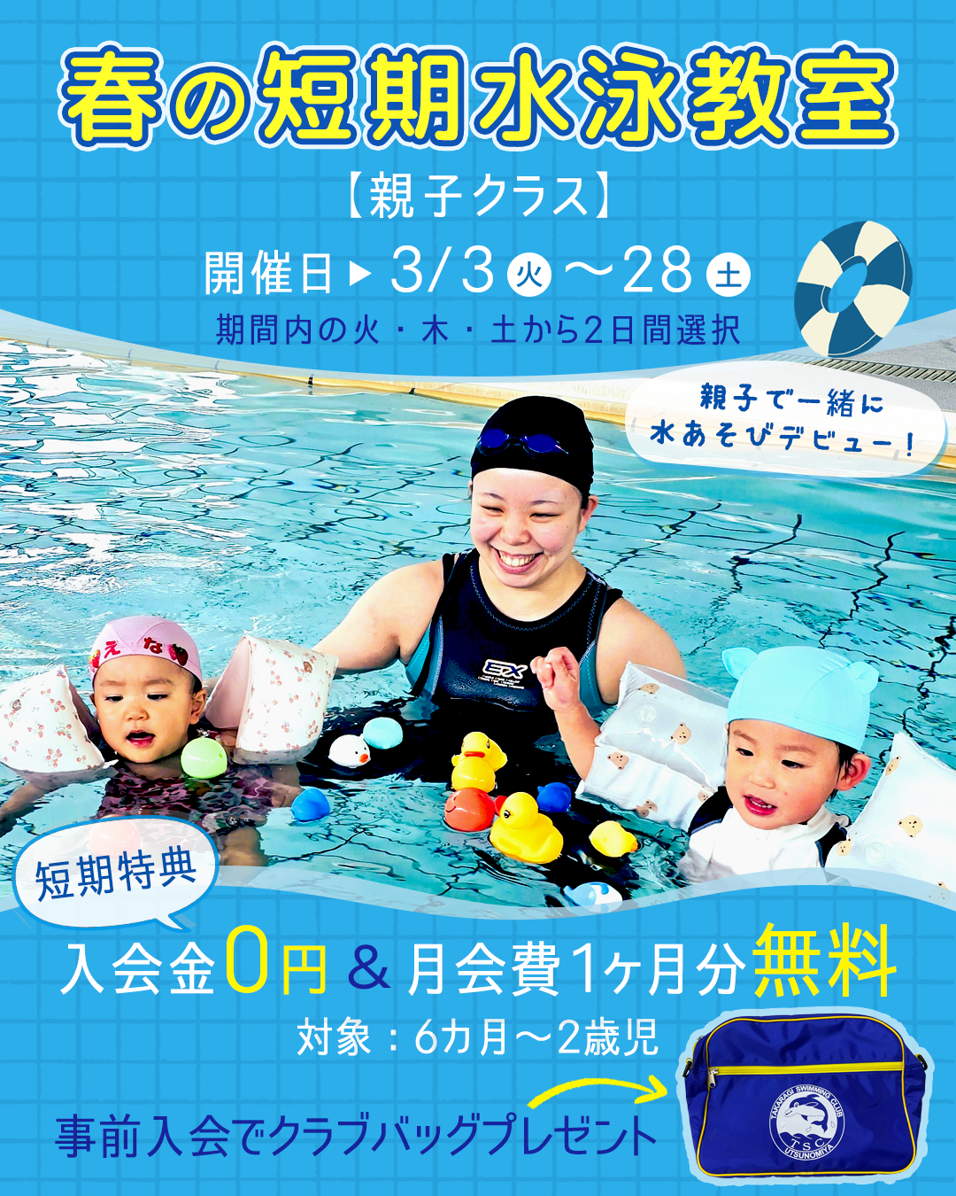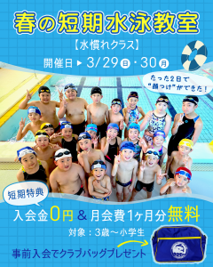 春の短期水泳教室のお知らせ‼